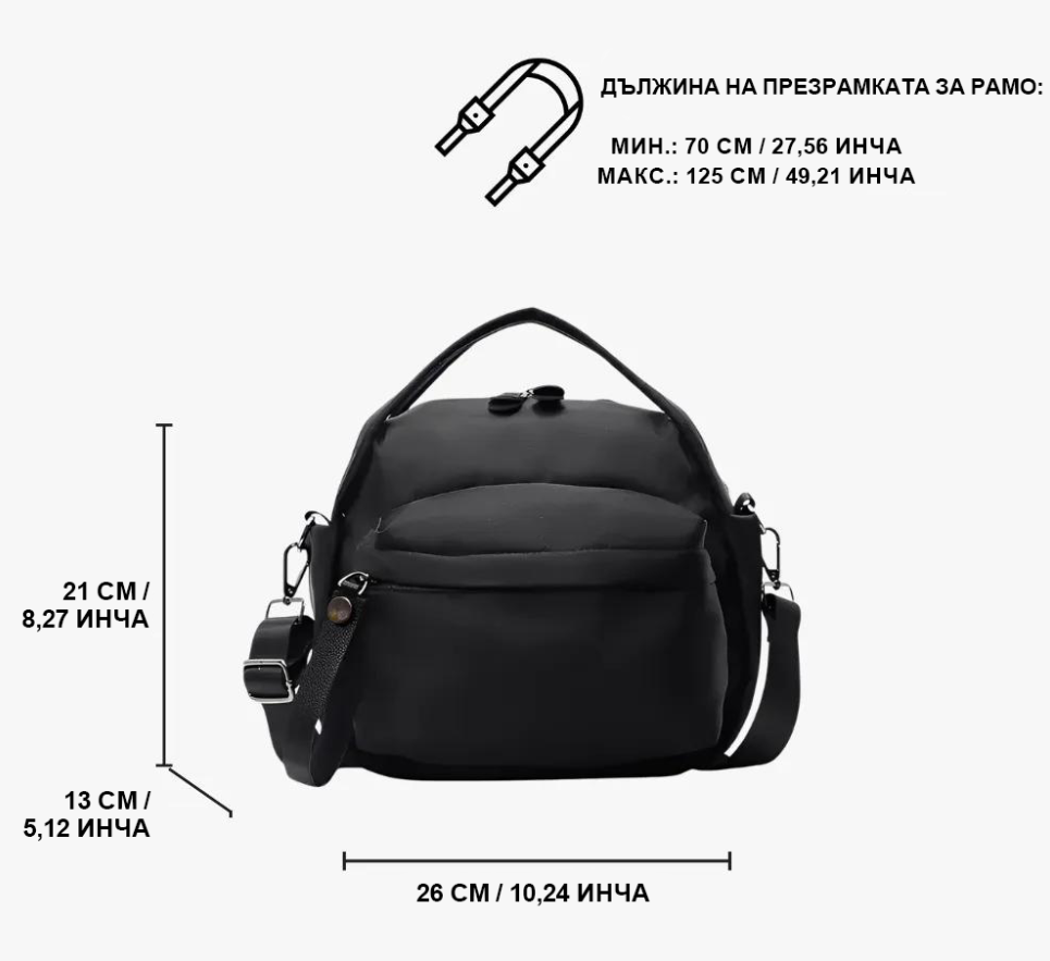 • Дължина на презрамката: 70 см – 125 см | 27,56 – 49,21 инча